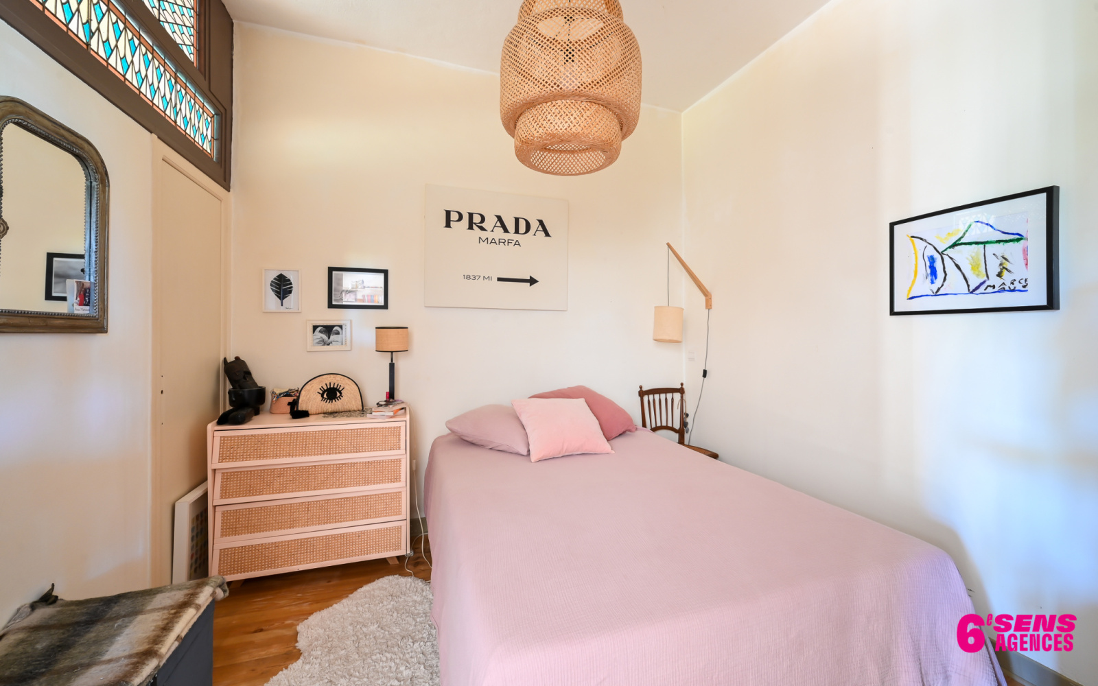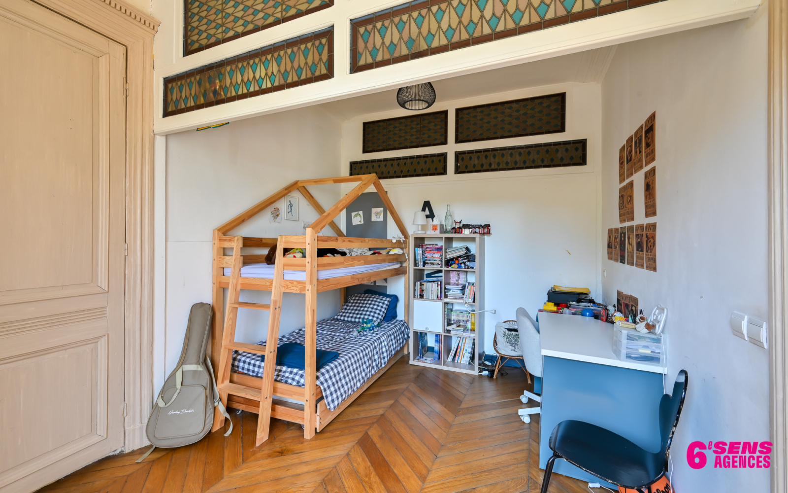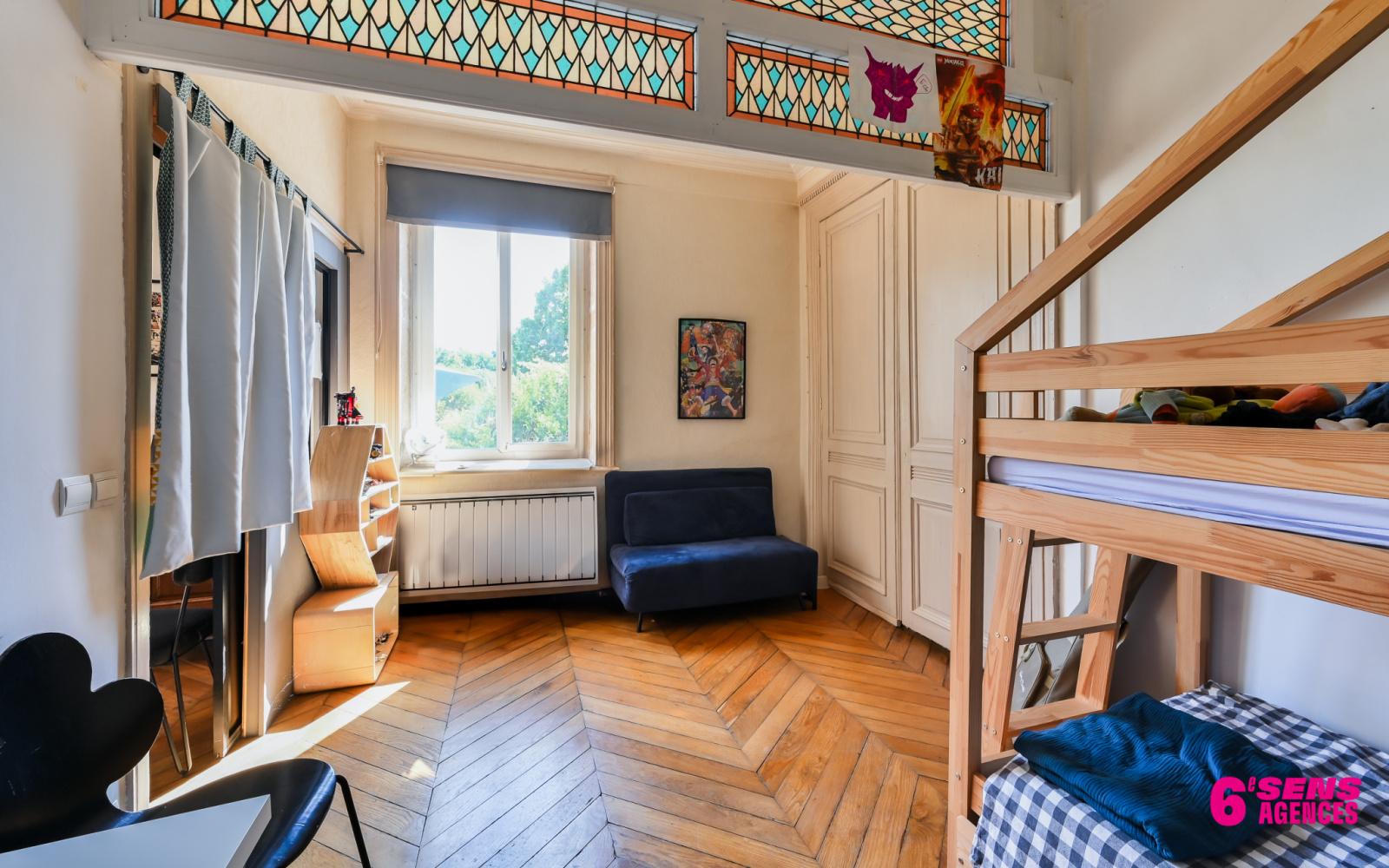 L'appartement offre des prestations anciennes de charme, parquets, cheminée, vitraux, il est en très bon état général .